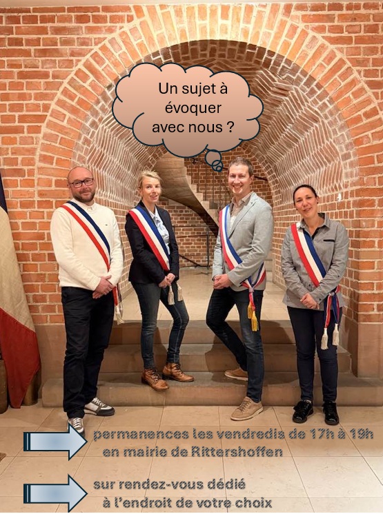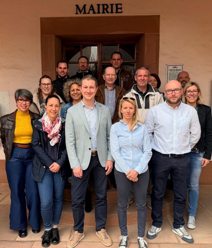 Florence EYER, Florine BUHLER (3è adjointe), Philippe JUNG (maire), Stéphanie HAMM (1ère adjointe), Christophe ITZEL (2è adjoint)